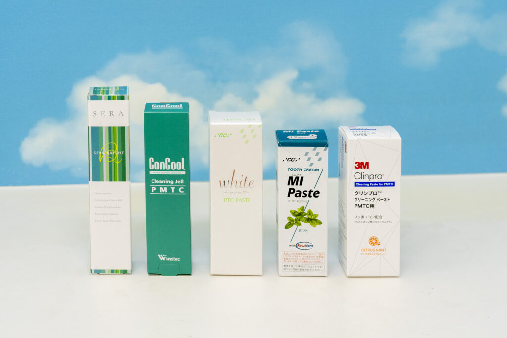 どの年代の方にも最良の配合をした歯磨き粉をはじめ、PMTC、PTCの専用ペーストやジェル、マウスウォッシュなどをご用意しております。
